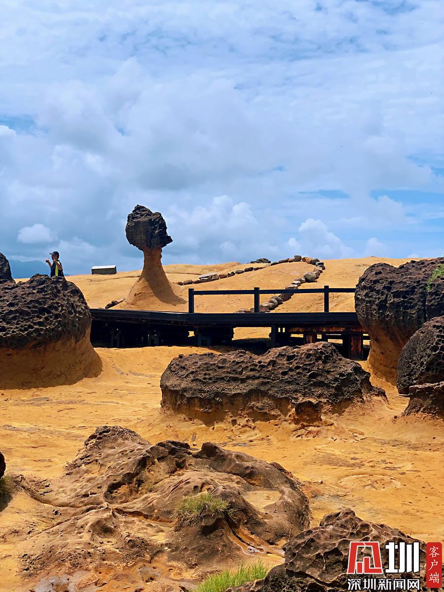女王頭本身就是一個(gè)蕈狀石,形成原因和其他蕈狀石大致相同。由于它的頸子修長(zhǎng)、臉部線(xiàn)條優(yōu)美,神態(tài)像極昂首靜坐的尊貴女王,大家才特別稱(chēng)它為“女王頭”。孫遜攝