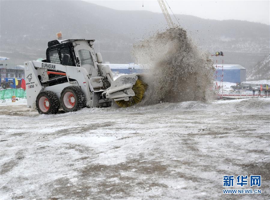 圖為一臺掃雪車在國家跳臺滑雪中心工作(攝于12月10日)。新華社記者畢明明攝