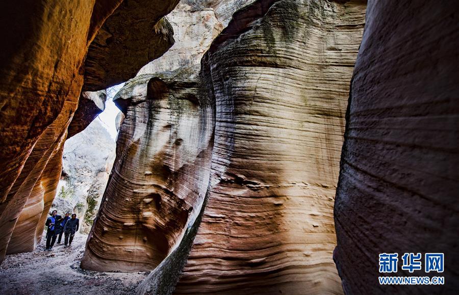12月17日,游人在志丹縣雙河鎮(zhèn)毛項(xiàng)峽谷內(nèi)游覽。新華社記者陶明攝