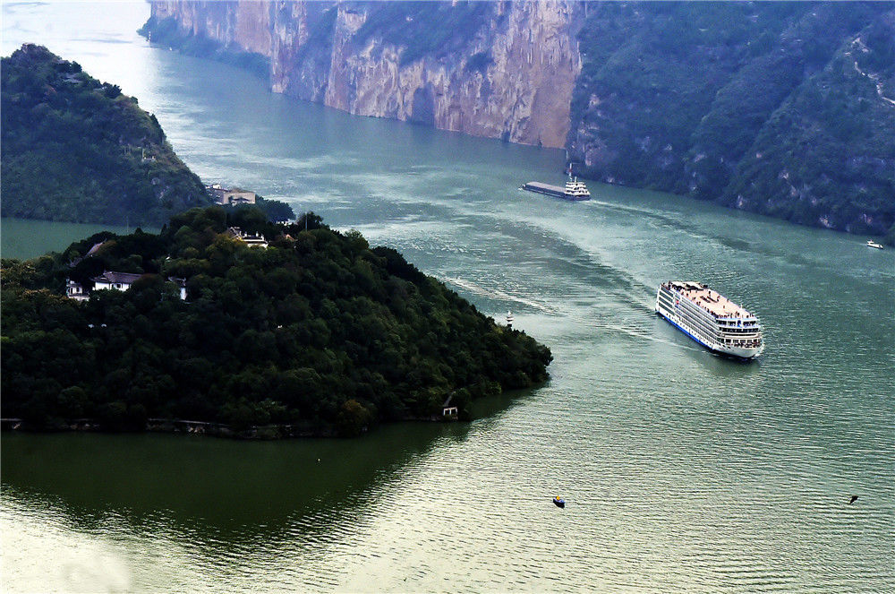 2019年11月3日,重慶,四面環(huán)水的“白帝城孤島”風貌,各種豪華游輪陸續(xù)駛往寶塔坪旅游碼頭,供游客們登島參觀。