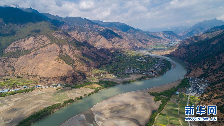 這是無人機(jī)拍攝的“長江第一灣”(3月17日攝)?!伴L江第一灣”位于云南省麗江市玉龍納西族自治縣石鼓鎮(zhèn),萬里長江從青藏高原奔騰而下,與瀾滄江、怒江一起在橫斷山脈的高山深谷中穿行形成并流的壯麗景觀。金沙江在麗江石鼓鎮(zhèn)突然以急轉(zhuǎn)彎轉(zhuǎn)向東北,形成一個(gè)宛若“V”字形的大轉(zhuǎn)彎,得名“長江第一灣”。春日里,“長江第一灣”江水青碧,美景迷人。新華社記者胡超攝