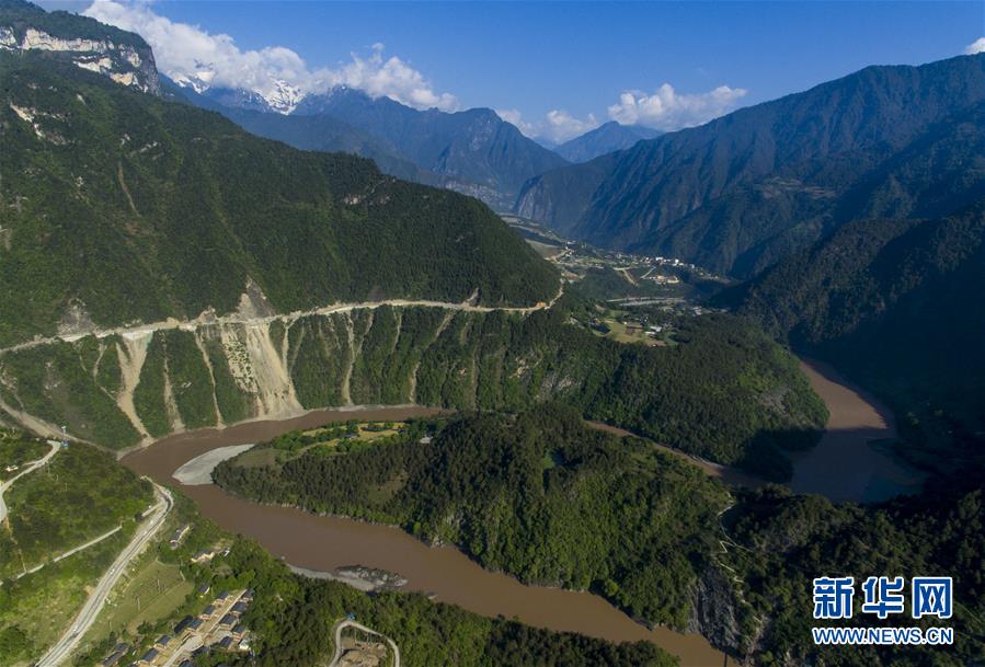 這是4月27日在云南省貢山獨(dú)龍族怒族自治縣丙中洛鎮(zhèn)拍攝的“怒江第一灣”(無人機(jī)拍攝)。怒江自青藏高原一路奔騰向南流至云南省貢山獨(dú)龍族怒族自治縣丙中洛鎮(zhèn),高黎貢山與碧羅雪山夾江而立,江水順山勢急轉(zhuǎn)形成了一個(gè)氣勢磅礴的半圓形大灣,被稱為“怒江第一灣”。新華社記者江文耀攝