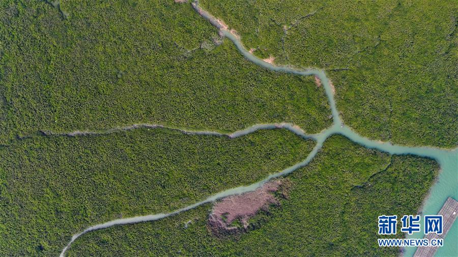 12月21日無人機(jī)拍攝的廣西合浦縣黨江鎮(zhèn)更螺圍出??谝痪啊6?,廣西廉州灣海域風(fēng)光別致。新華社記者張愛林?jǐn)z