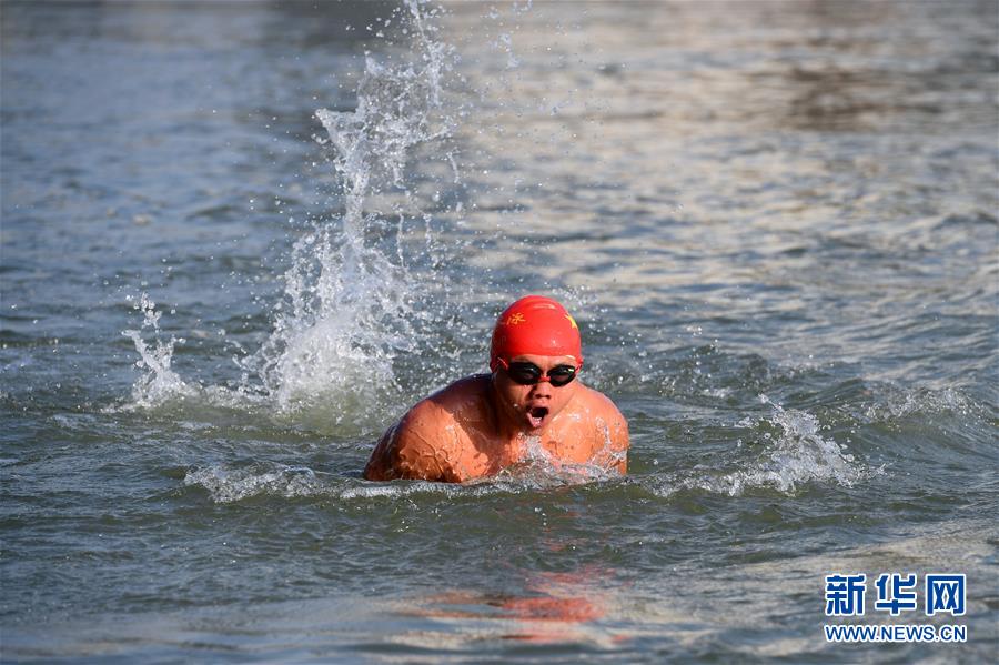 12月18日,冬泳愛好者張敏捷在黃河冬泳。新華社記者馬寧攝