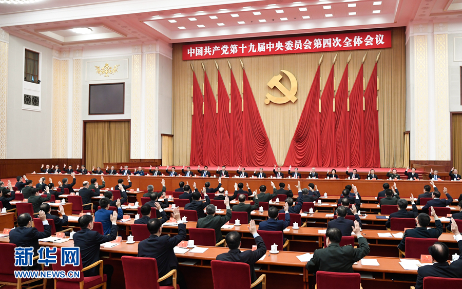 10月28日至31日,中共十九屆四中全會(huì)在北京召開。會(huì)議審議通過《中共中央關(guān)于堅(jiān)持和完善中國(guó)特色社會(huì)主義制度、推進(jìn)國(guó)家治理體系和治理能力現(xiàn)代化若干重大問題的決定》,全面總結(jié)中國(guó)特色社會(huì)主義制度建設(shè)的歷史性成就,集中概括中國(guó)特色社會(huì)主義制度和國(guó)家治理體系的顯著優(yōu)勢(shì),深刻闡述支撐中國(guó)特色社會(huì)主義制度的根本制度、基本制度、重要制度,明確了堅(jiān)持和完善中國(guó)特色社會(huì)主義制度、推進(jìn)國(guó)家治理體系和治理能力現(xiàn)代化的總體要求、總體目標(biāo)和重點(diǎn)任務(wù)。