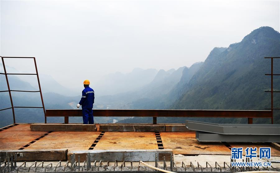 9月26日,一名建設(shè)者在平塘特大橋上眺望。新華社記者楊文斌攝
