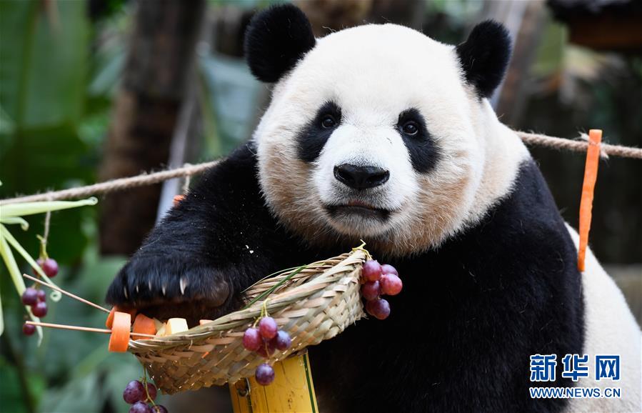 12月31日,大熊貓“舜舜”在挑選“火鍋”內(nèi)的美食。 新華社記者 楊冠宇 攝