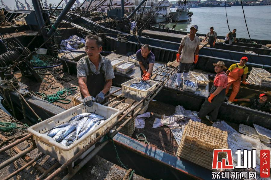 山東日照海鮮市場一派豐收景象。
