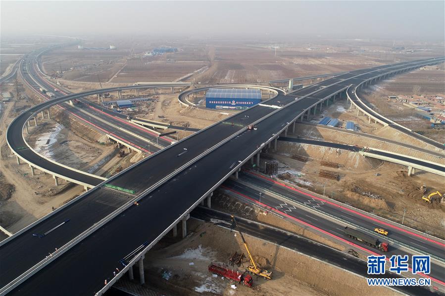 這是1月3日拍攝的北京大興國際機場北線高速公路廊坊段王場互通樞紐(無人機照片)。新華社記者牟宇攝
