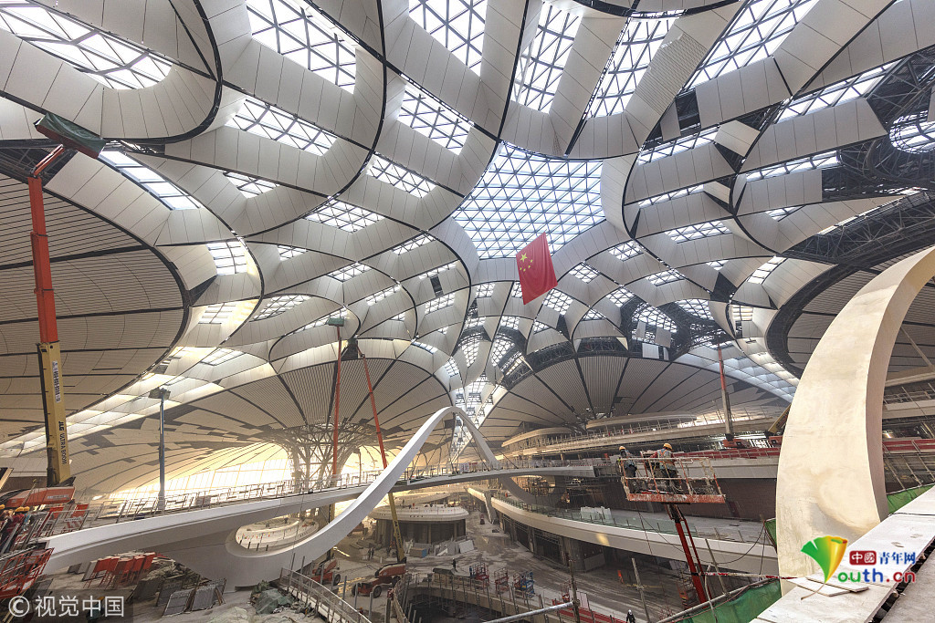 2019年4月26日,北京大興國際機場將于9月底正式通航。工程建設進入總攻階段,目前,航站樓內部裝飾進行收尾的工作。武輝/千龍圖像/視覺中國