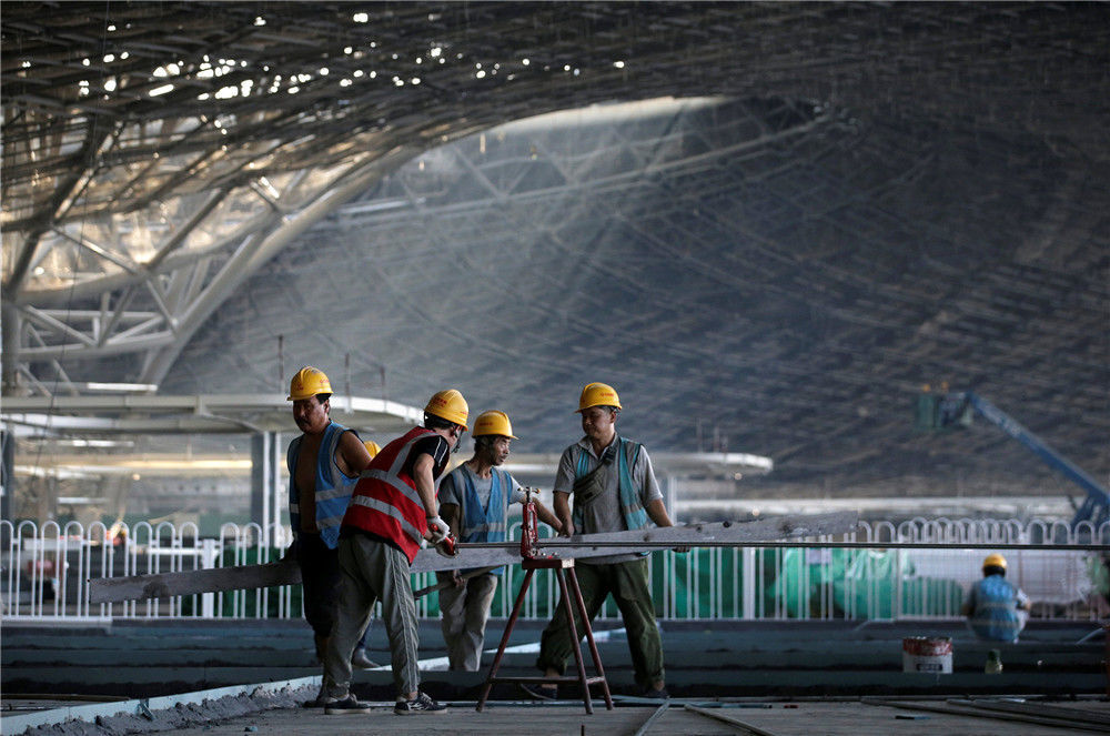 2019年5月24日,北京,新機場建設距離竣工時間還有37天,工程進入倒計時。機場開建至今不到5年時間,機場施工工程將于6月底竣工,將于9月底投入運營,該機場有望成為世界上規(guī)模最大的機場之一。任振朝/千龍圖像/視覺中國