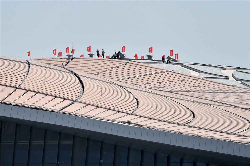 2018年12月19日,北京大興國際機場航站樓的屋面已基本完工,一只金色“鳳凰”完整地出現在北京城南。視覺中國