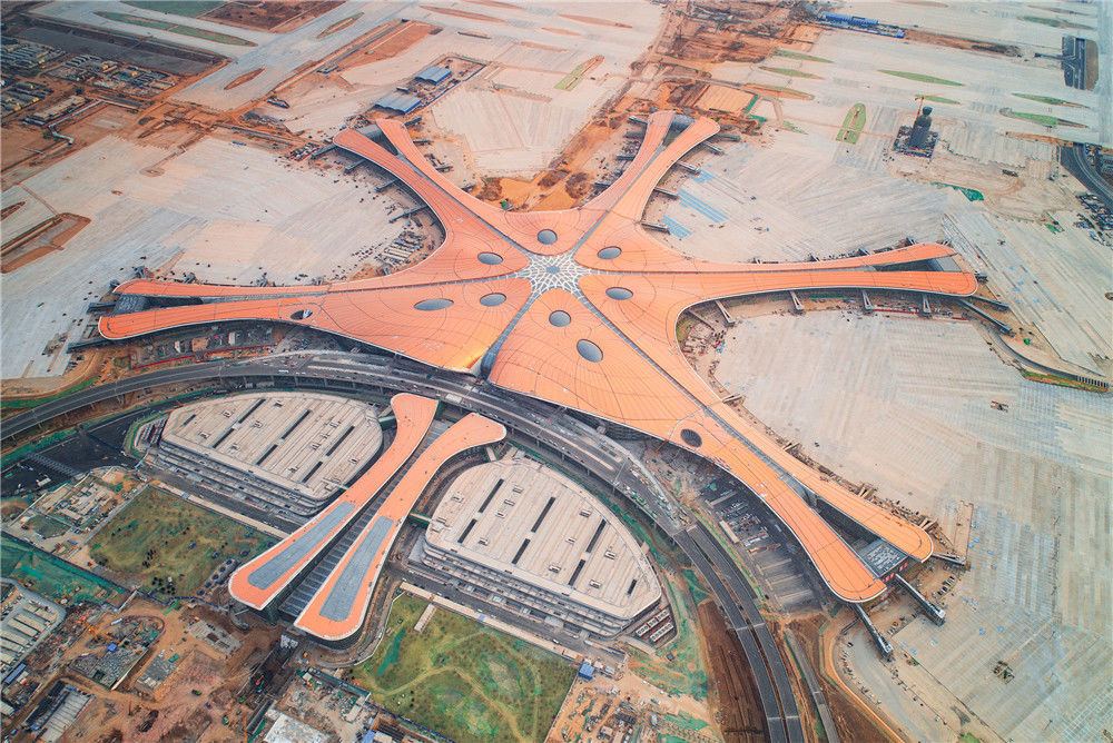 2018年12月26日,航拍北京大興國(guó)際機(jī)場(chǎng),形如展翅的鳳凰。大興國(guó)際機(jī)場(chǎng)由普利策獎(jiǎng)建筑學(xué)獎(jiǎng)獲得者扎哈設(shè)計(jì),預(yù)計(jì)2019年6月30日前全面竣工,2019年9月30日投入運(yùn)營(yíng)。張喬/視覺中國(guó)