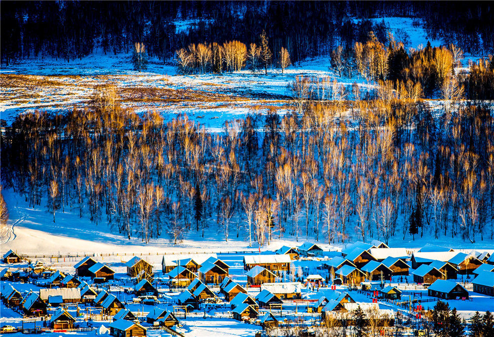 2018年1月18日,新疆阿勒泰,冰雪中的新疆禾木村。王文/視覺中國編輯/康娜