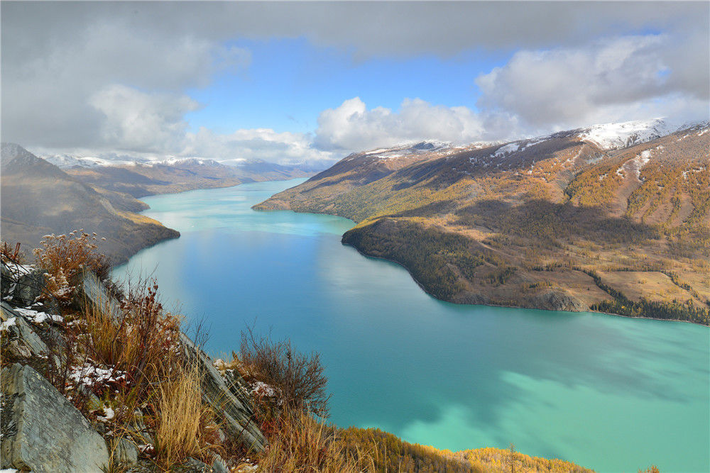 新疆維吾爾自治區(qū)阿勒泰地區(qū)??{斯湖,面積45.75平方公里,平均水深120米,最深處達到188.5米,蓄水量達53.8億立方米。外形呈月牙,被推測為古冰川強烈運動阻塞山谷積水而成。李二慶/視覺中國