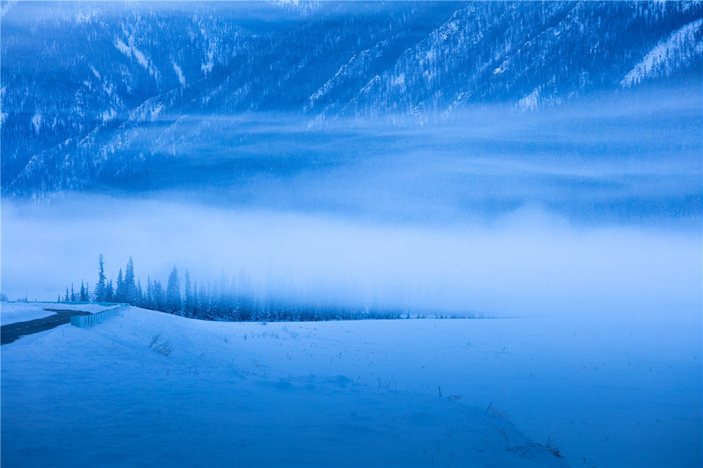 2019年2月17日,新疆,冬季的喀納斯湖神仙灣。楊德軍/視覺中國