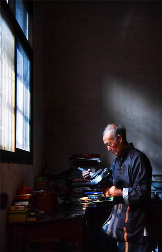 2019年10月12日,在江西省鄱陽縣鄱陽鎮(zhèn),76歲的“鄱陽脫胎漆器髹飾技藝”國家級(jí)非物質(zhì)文化遺產(chǎn)代表性傳承人丁國坤在家中為一件未成形的脫胎漆器“上漆”。新華社記者胡晨歡攝