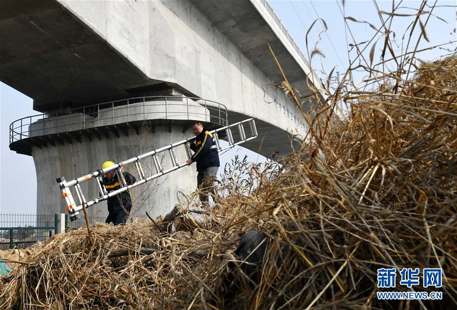 1月3日,中國(guó)鐵路濟(jì)南局臨沂工務(wù)段工程技術(shù)員在沂河特大橋橋下搬運(yùn)工具。新華社記者 朱崢攝