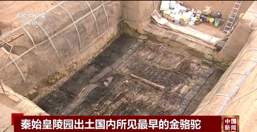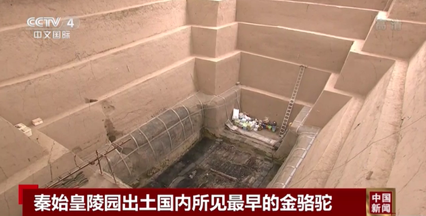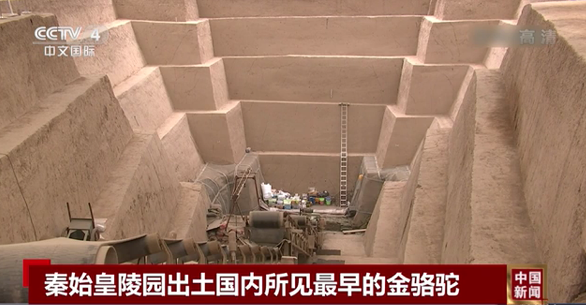 近日,秦始皇帝陵博物院公布最新考古成果:考古人員在秦陵在秦陵外城西側(cè)的陵區(qū),對一座編號(hào)為一號(hào)墓葬(QLCM1)的“中字形”墓葬進(jìn)行了發(fā)掘,取得重要收獲。該墓為目前發(fā)現(xiàn)秦代規(guī)模最大、等級(jí)最高、保存最完好的大型墓葬,填補(bǔ)了秦代高等級(jí)墓葬的空白。出土了目前國內(nèi)所見最早的單體金駱駝。