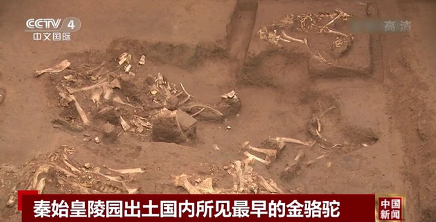 出土的金駱駝是目前國內(nèi)所見最早的單體金駱駝。這些出土器物不僅為漢代絲綢之路開通以前,中西文化交流提供了重要依據(jù),也為秦代政治、經(jīng)濟(jì)、軍事、科技、文化等研究提供了重要的實(shí)物材料。