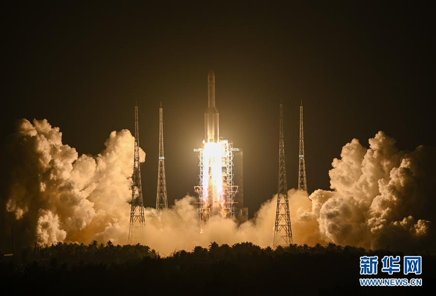 2019年12月27日20時(shí)45分,長(zhǎng)征五號(hào)遙三運(yùn)載火箭在中國文昌航天發(fā)射場(chǎng)點(diǎn)火升空。 新華社記者陳曄華攝
