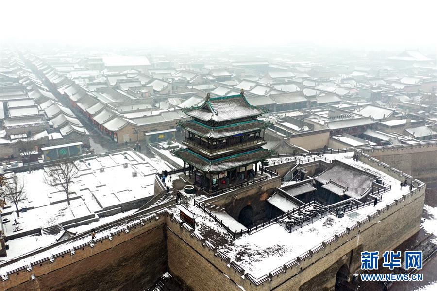 當(dāng)日,山西省平遙縣迎來(lái)降雪,雪中的平遙古城銀裝素裹,美景如畫。平遙古城是目前中國(guó)保存最完整的古代縣級(jí)城池之一,1997年被列入世界文化遺產(chǎn)名錄。
