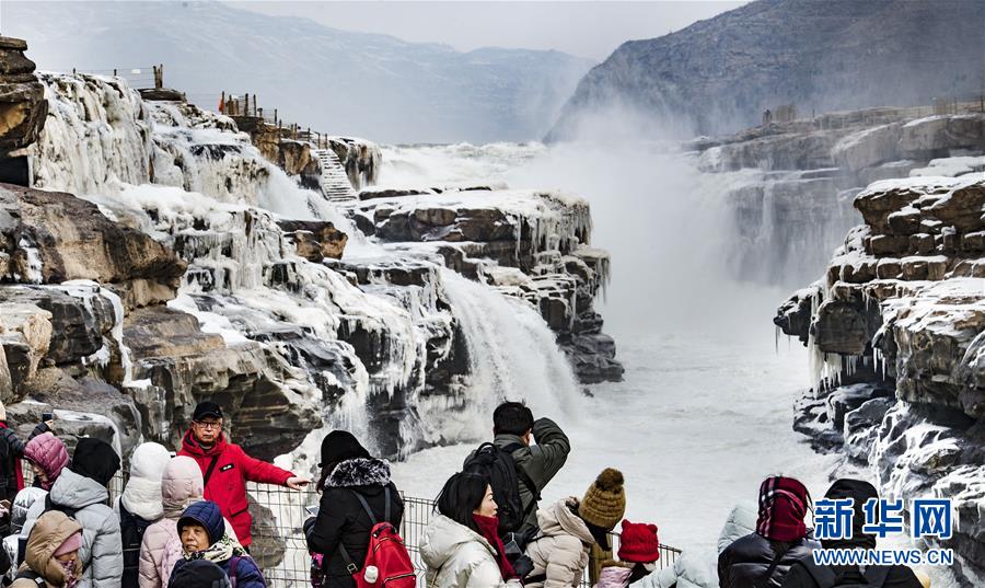 1月12日,游人在陜西黃河壺口瀑布景區(qū)內游覽。新華社記者陶明攝