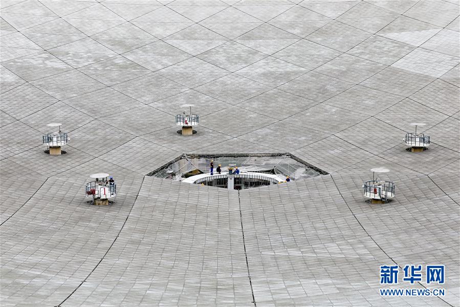 8月28日,工作人員在對FAST進(jìn)行檢修。近日,工作人員對“中國天眼”進(jìn)行日常維護(hù)和檢修,給“天眼”進(jìn)行全面“體檢”。被譽(yù)為“中國天眼”的500米口徑球面射電望遠(yuǎn)鏡(FAST)于2016年9月25日落成啟用,即將迎來落成三周年。新華社記者歐東衢攝