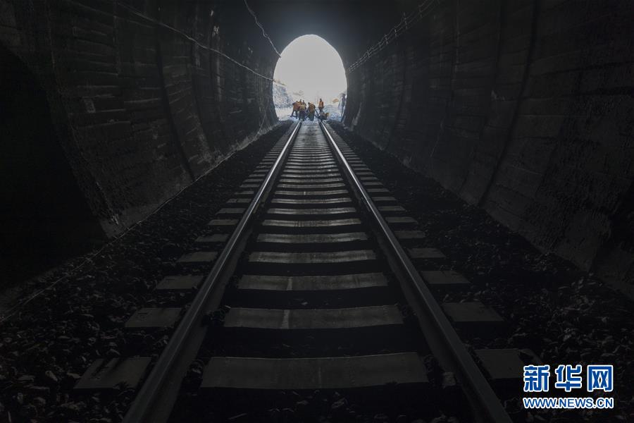 1月6日,在加格達奇工務(wù)段西羅奇嶺二號隧道,西羅奇維修工隊工作人員進行維修作業(yè)。新華社記者才揚攝