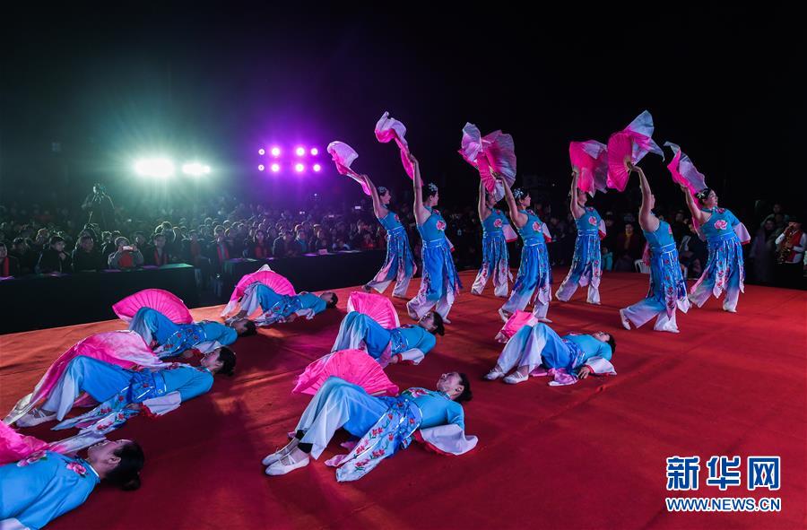 1月14日,杭州市余杭區(qū)中泰街道中橋村的文化公園內(nèi)在進(jìn)行“我們的村晚”舞蹈表演,吸引了大批當(dāng)?shù)匕傩沼^看。臨近春節(jié),浙江省杭州市余杭區(qū)中泰街道各村社的文化禮堂紛紛上演“我們的村晚”。老百姓自編、自導(dǎo)、自演為主的“土味”聯(lián)歡會(huì)因接地氣、親情濃而深受當(dāng)?shù)匕傩盏南矏?ài),成為當(dāng)?shù)剜l(xiāng)村百姓的新年迎春“文化大餐”。近年來(lái),中泰街道以文化振興助推鄉(xiāng)村振興。目前,中泰街道下屬各村陸續(xù)建成文化禮堂7個(gè)、社區(qū)文化家園2個(gè),努力培育和挖掘出一批鄉(xiāng)土文化人才及原創(chuàng)作品,2019年全年開(kāi)展各類(lèi)鄉(xiāng)村社區(qū)惠民文體活動(dòng)累計(jì)180余場(chǎng)次。新華社記者徐昱攝