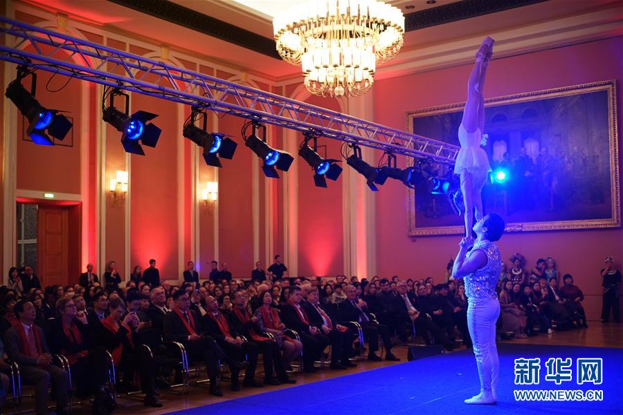 1月15日,在德國柏林,貴州省歌舞劇院藝術(shù)團(tuán)的演員在晚會上表演雜技。 15日晚,2020年“歡樂春節(jié)”新春文藝晚會在德國柏林的紅色市政廳上演,中德兩國各界代表觀看演出,共慶中國農(nóng)歷新年。 新華社記者 王勍 攝