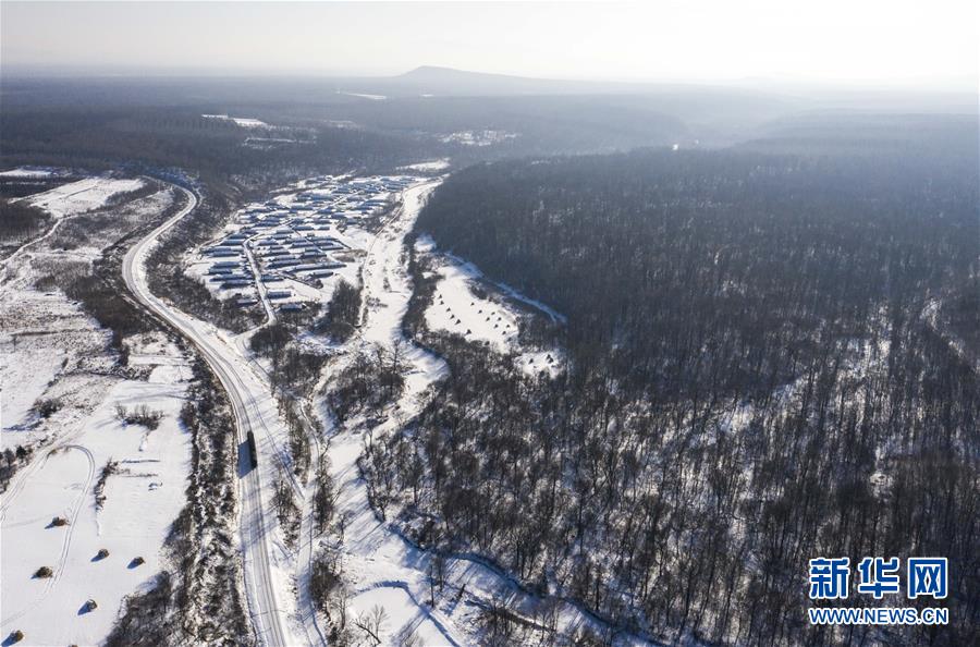 “送水小火車”行駛在林海間,前往送水地點(diǎn)(1月17日攝,無(wú)人機(jī)照片)。新華社記者 許暢 攝