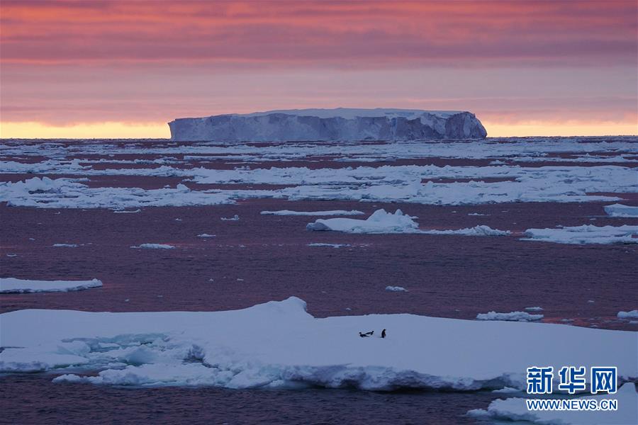 南大洋上的午夜冰山(2019年12月28日攝)。新華社記者劉詩平攝