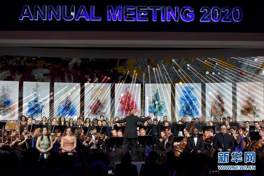 1月20日,在瑞士達(dá)沃斯,藝術(shù)家在世界經(jīng)濟論壇2020年年會開幕音樂會上表演。 新華社記者 郭晨 攝
