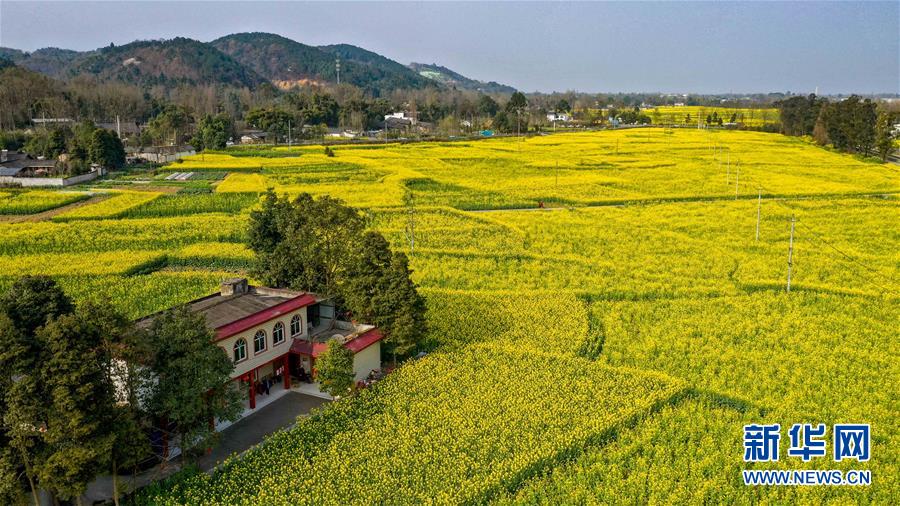 2月25日在四川省崇州市農(nóng)業(yè)產(chǎn)業(yè)功能區(qū)拍攝的油菜花田(無人機(jī)照片)。 初春時(shí)節(jié),正值農(nóng)時(shí)。成都平原西部的大邑、崇州等縣市油菜長勢良好,一片生機(jī)盎然的景象。 新華社記者 王曦 攝