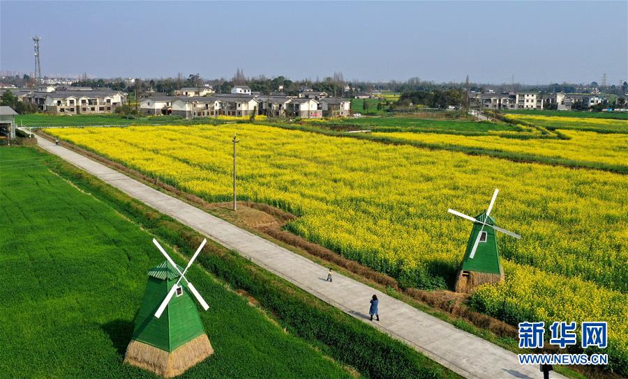 2月25日在四川省崇州市拍攝的油菜花田(無人機照片)。新華社記者王曦攝