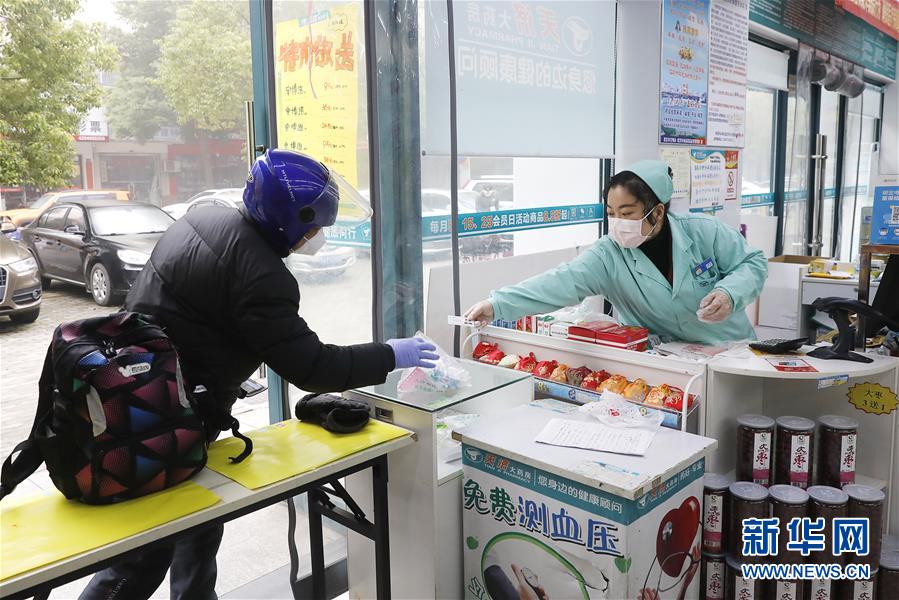 2月22日,王春波將藥品遞給前來買藥的外賣騎手。王春波是武昌天濟(jì)大藥房錦繡江南店的一名店員,在武漢下達(dá)“所有小區(qū)全面實施封閉管理”的禁令之后,很多居民買藥成了麻煩事,尤其是獨居的老年人。她知道后,主動聯(lián)系物業(yè)告知大家,如果有需要,她可以上門送藥。現(xiàn)在,她和同事每天要派送100多單藥品,大部分都是“三高人群”服用的藥。很多顧客很感激王春波,“幸虧你們一直開業(yè),東西也齊全,一分錢都沒漲!”王春波說:“關(guān)鍵時期,大家都是在相互幫忙,這就是很平常、很普通的一件事?!毙氯A社記者熊琦攝