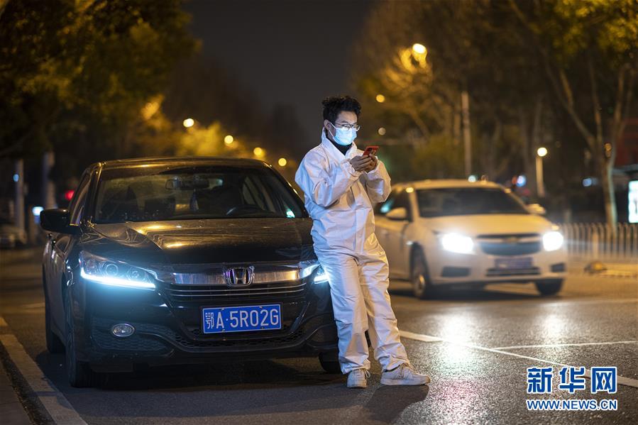2月21日,王永朋在路邊等待,準(zhǔn)備接單。這個春節(jié)王永朋沒回老家甘肅安陽,他報名擔(dān)任高德醫(yī)護(hù)專車志愿者,開著年前剛買的新車,免費接送醫(yī)護(hù)人員上下班。因為住在武漢新洲區(qū),距離江漢、武昌等老城區(qū)有相當(dāng)一段車程,他每天早上6點就起床出車,晚上十一二點才能回家休息,一天接送幾十位醫(yī)護(hù)人員上下班。每次到達(dá)目的地,醫(yī)生和護(hù)士下車后做的第一件事,總是向他致謝,還有不少人硬要塞錢給他,穿著防護(hù)衣、戴著口罩和護(hù)目鏡的王永朋,每次都微笑著退回了。新華社記者熊琦攝