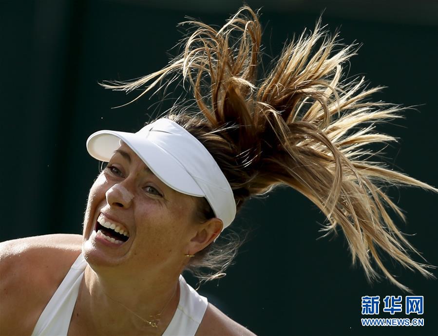 圖為2019年7月2日,莎拉波娃在溫布爾登網(wǎng)球公開賽女單第一輪比賽中對陣法國選手帕爾芒捷。比賽進(jìn)行至第三盤時,莎拉波娃退賽,止步首輪。 新華社記者韓巖攝