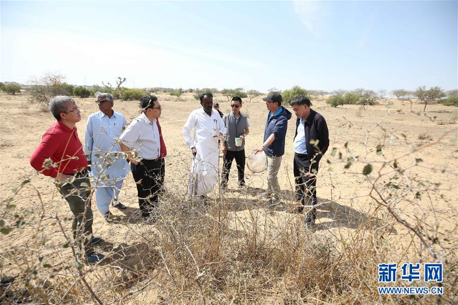 2月26日,在巴基斯坦信德省,中國蝗災防治工作組專家查看蝗災狀況。新華社記者劉天攝