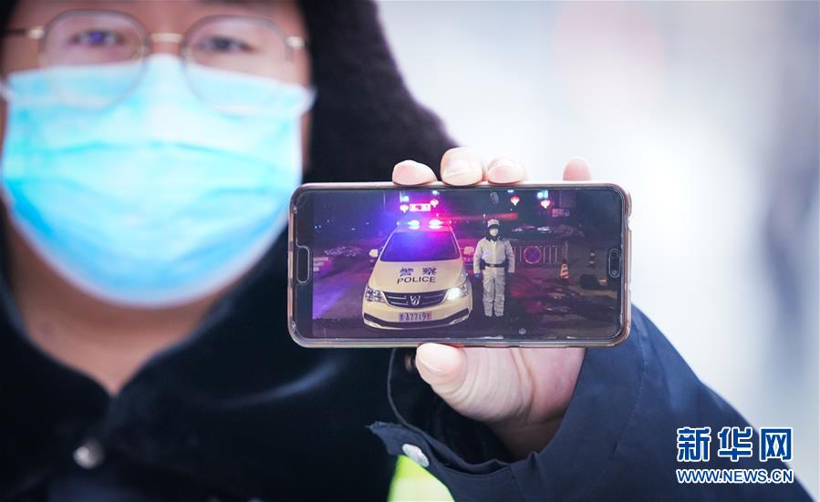 李可心展示手機里父親李論的工作照(3月1日攝)。父親李論是一名民警,負責(zé)對轄區(qū)內(nèi)疑似感染人員居住小區(qū)進行封控、排查工作。新華社記者王松攝