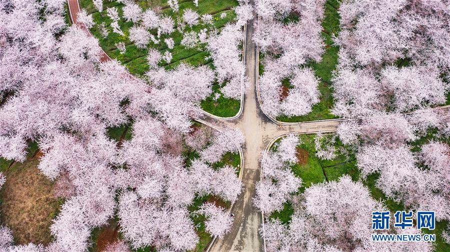 3月12日拍攝的貴安新區(qū)櫻花觀光園風(fēng)景(無人機(jī)照片)。 近日,貴州省貴安新區(qū)櫻花觀光園內(nèi)櫻花競相盛開,花團(tuán)錦簇間春意盎然。據(jù)介紹,疫情防控期間,為避免人群聚集,櫻花園暫不接待游客。 新華社記者 陶亮 攝