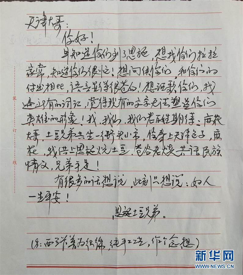 這是譚祖悅以“恩施土豆兄弟”的名義,為支援恩施的天津醫(yī)療隊寫的一封信(3月3日攝)。 新華社發(fā)
