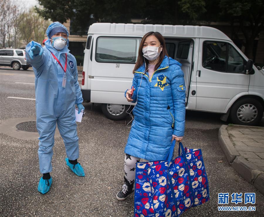 3月12日,黎婧(右)到達(dá)小區(qū)后激動(dòng)不已。 3月12日,插畫(huà)師黎婧和84位病友離開(kāi)自己居住的武漢軟件工程職業(yè)學(xué)院康復(fù)驛站,回到自己家中。他們都是治愈出院的新冠病毒肺炎患者,已經(jīng)在武漢軟件工程職業(yè)學(xué)院康復(fù)驛站進(jìn)行了14天醫(yī)學(xué)觀察,達(dá)到醫(yī)學(xué)標(biāo)準(zhǔn),成功解除隔離。他們由專車(chē)運(yùn)送至所屬社區(qū)附近的集散點(diǎn)后,在社區(qū)工作人員的陪同下回家。 新華社記者 肖藝九 攝