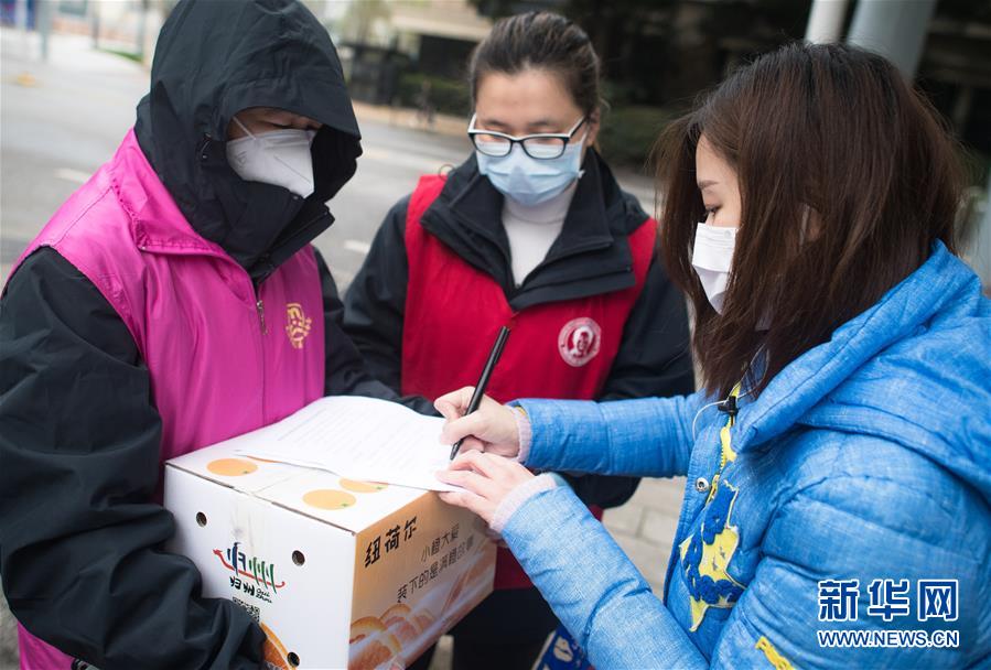 3月12日,小區(qū)工作人員為黎婧(右)準(zhǔn)備了一箱臍橙。 3月12日,插畫師黎婧和84位病友離開自己居住的武漢軟件工程職業(yè)學(xué)院康復(fù)驛站,回到自己家中。他們都是治愈出院的新冠病毒肺炎患者,已經(jīng)在武漢軟件工程職業(yè)學(xué)院康復(fù)驛站進(jìn)行了14天醫(yī)學(xué)觀察,達(dá)到醫(yī)學(xué)標(biāo)準(zhǔn),成功解除隔離。他們由專車運(yùn)送至所屬社區(qū)附近的集散點(diǎn)后,在社區(qū)工作人員的陪同下回家。 新華社記者 肖藝九 攝