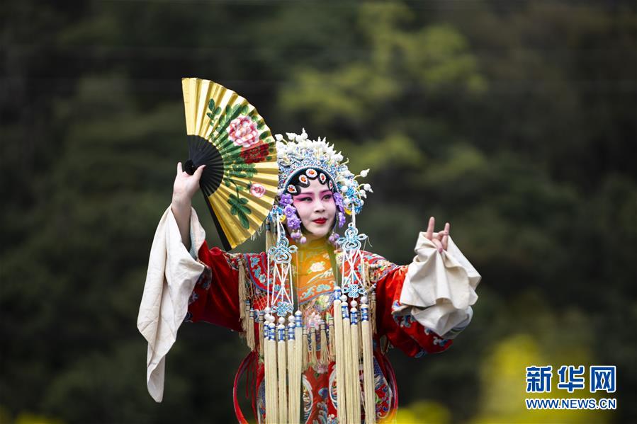 3月16日,演員在李坑村的“花田音樂會(huì)”上表演戲曲。 新華社記者 張浩波 攝
