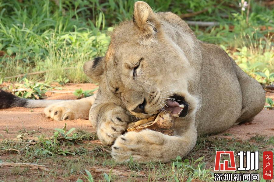 肯尼亞獅子捉了只烏龜當(dāng)“零食” 啃不到肉肉好生氣!