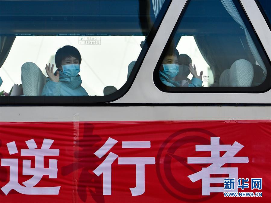 3月17日,醫(yī)療隊(duì)隊(duì)員在青海西寧曹家堡國(guó)際機(jī)場(chǎng)向前來(lái)接機(jī)的人們揮手致意。隨著湖北新冠肺炎疫情形勢(shì)好轉(zhuǎn),當(dāng)日,援鄂醫(yī)療隊(duì)開始有序撤回,陸續(xù)抵達(dá)各地。新華社記者張龍攝