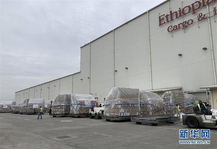 這是3月22日在埃塞俄比亞首都亞的斯亞貝巴國際機(jī)場拍攝的中國援助的抗疫物資。歷時(shí)10小時(shí)飛行,滿載著來自中國抗疫物資的埃航貨運(yùn)包機(jī)22日上午抵達(dá)埃塞俄比亞首都亞的斯亞貝巴的國際機(jī)場,這是馬云公益基金會(huì)和阿里巴巴公益基金會(huì)捐贈(zèng)非洲的部分醫(yī)療物資,用于支援非洲54國抗擊疫情。新華社記者王守寶攝