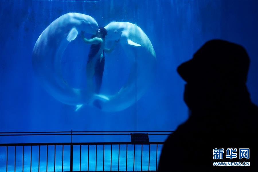 3月23日,游客在哈爾濱極地館觀賞白鯨表演。當(dāng)日,哈爾濱極地館恢復(fù)營(yíng)業(yè)。目前,極地館日接待人數(shù)不超過400人,園區(qū)采取分時(shí)段、間隔性辦法安排游客有序入園。游客實(shí)名預(yù)訂門票,入園要配合測(cè)溫、佩戴口罩、掃描“龍江健康碼”,刷身份證入館。新華社記者王建威攝